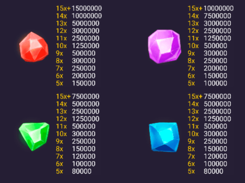 Como viste, en este juego los premios no se basan en líneas tradicionales, sino en grupos de 5 o más símbolos iguales que se agrupan horizontal o verticalmente.
