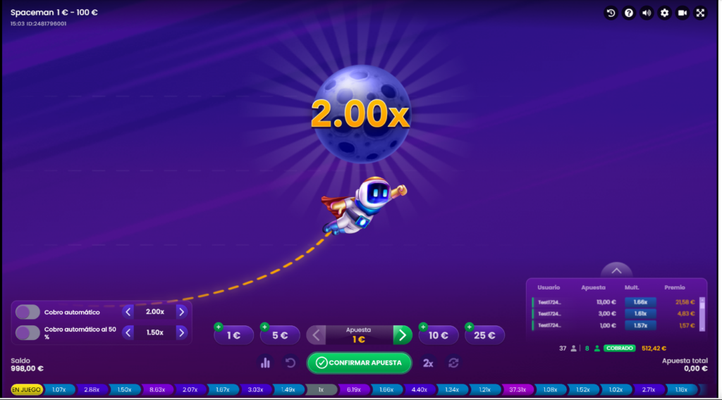 - 💸 Retiro parcial: posibilidad de retirar el 50% de la apuesta antes de la colisión.