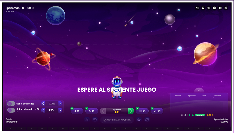 Spaceman es un juego de azar y emoción. La paciencia y una mente clara son tus mejores aliados para tomar decisiones acertadas y disfrutar del juego.